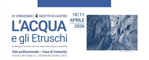 - Grotte di Castro (Vt). Alla Casa di Comunità il IV convegno “L’Acqua e gli Etruschi” sul tema “Archeologia e territorio: percorsi, luoghi della cultura, accessibilità”. Ecco il programma aprile 10, 2026