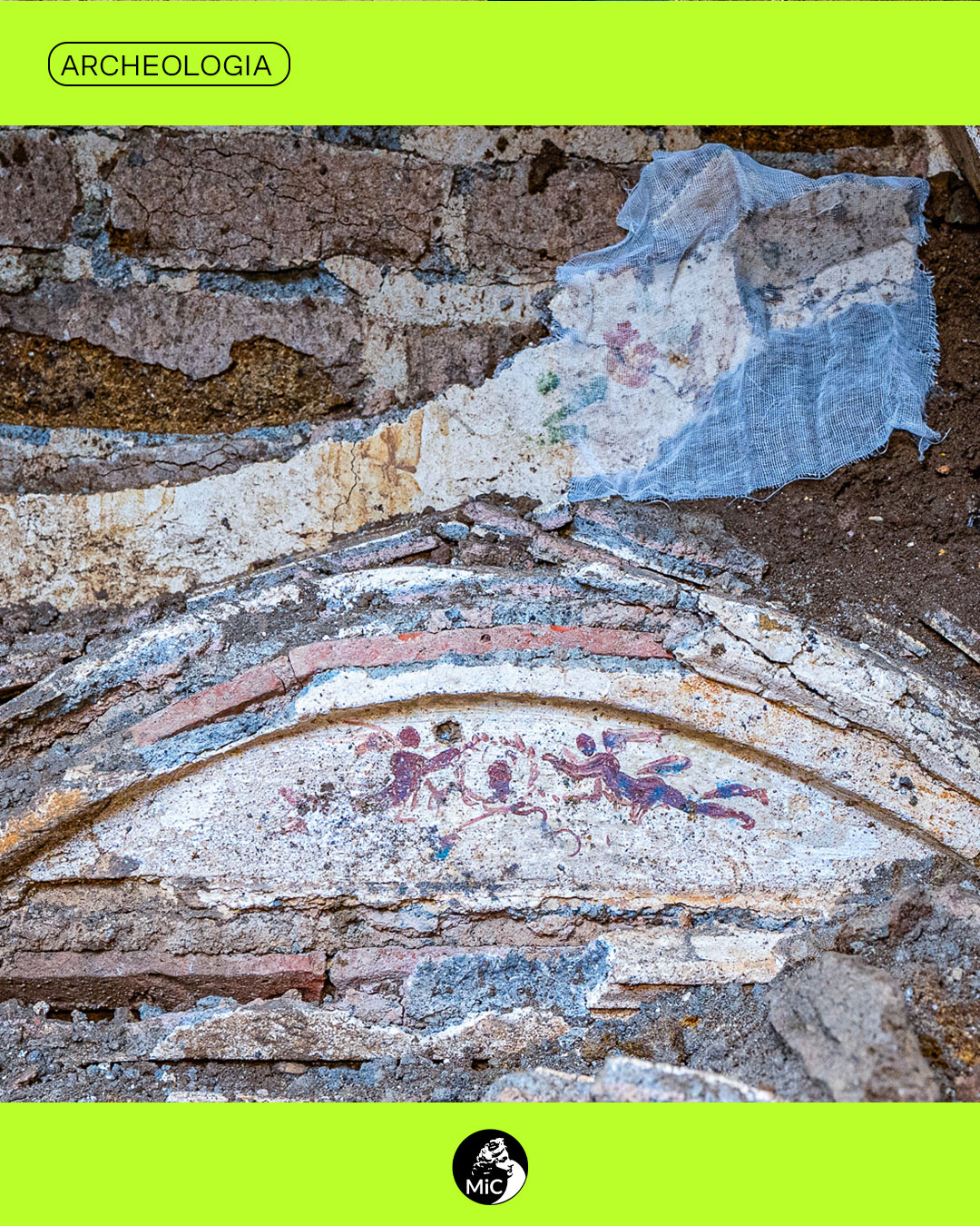 “Lo scavo dei sepolcri”, spiega Menghinello, “molto probabilmente identificabili come colombari, ambienti dotati di nicchie destinate a ospitare le urne cinerarie, è ancora in una fase preliminare. Nella limitata porzione attualmente visibile delle camere sepolcrali, è comunque già possibile riconoscere un elaborato apparato decorativo, costituito da intonaci affrescati a fasce e a motivi vegetali, stucchi, edicole ornate da figure della simbologia funeraria romana (come Oranti o Vittorie Alate). La prosecuzione dello scavo potrebbe consentire il rinvenimento di numerosi elementi di corredo, epigrafi e rivestimenti pavimentali”.