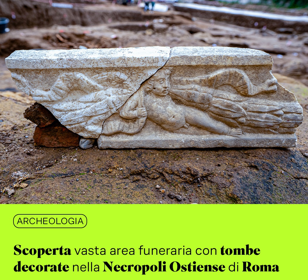 Durante le indagini di archeologia preventiva per la realizzazione di uno studentato in via Ostiense a Roma, la soprintendenza speciale Archeologia Belle arti e Paesaggio di Roma del ministero della Cultura ha riportato alla luce un’ampia area funeraria riconducibile alla Necropoli Ostiense, tra le più estese dell’antica Roma. Cinque edifici funerari di età imperiale, probabilmente colombari, con affreschi e stucchi di grande qualità, insieme a strutture tardo-antiche, restituiscono un contesto di straordinaria rilevanza scientifica. Le nuove scoperte, articolate in una lunga fase temporale tra la prima età imperiale e la tarda antichità, costituiscono un rinvenimento di grandissima rilevanza, in grado di fornire informazioni nuove e preziose sull’impianto topografico, nonché sugli aspetti antropologici, epigrafici e di cultura materiale della Necropoli Ostiense.