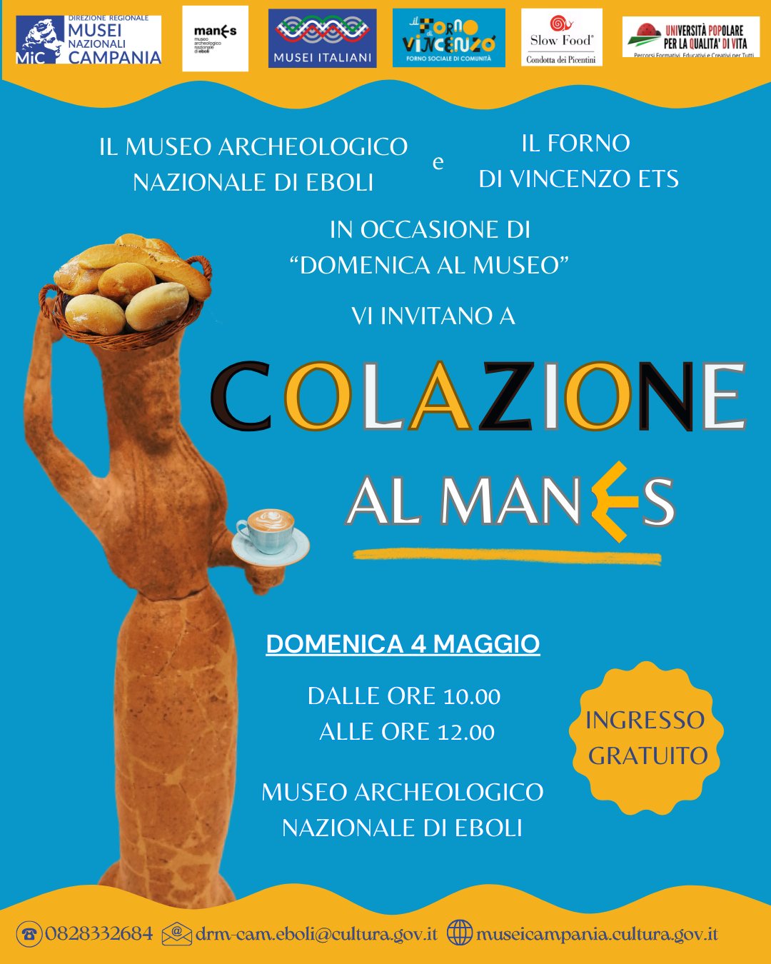 Domenica 4 maggio 2025, in occasione di #domenicalmuseo, il museo Archeologico nazionale di Eboli (Sa), con apertura aperti dalle 9 alle 13.30 (ultimo ingresso ore 13), propone il secondo appuntamento di “Colazione al ManES”, in collaborazione con l’associazione Il forno di Vincenzo ETS. L’evento, che si svolgerà dalle 10 alle 12, unirà cultura, gastronomia e solidarietà, dando la possibilità di accompagnare la visita al Museo con la degustazione di una colazione speciale, preparata dai ragazzi dell’associazione Il forno di Vincenzo. Ci saranno ancora una volta i classici, come la torta di mele e pane con la marmellata o con il pregiato miele delle suore, ma anche una sorpresa tutta da assaporare: il dolce eburino dell’antenata Dorina, la statuetta femminile simbolo del ManES. Il tutto accompagnato da caffè, tisane e acqua e limone. Sarà un momento di condivisione e arricchimento culturale per tutta la comunità, che permetterà di concretizzare un modello di inclusione sociale e lavorativa, a conferma della costante attenzione del Museo archeologico nazionale di Eboli ai temi dell’inclusività. L’ingresso al Museo e la partecipazione all’evento sono gratuiti e non occorre prenotazione.