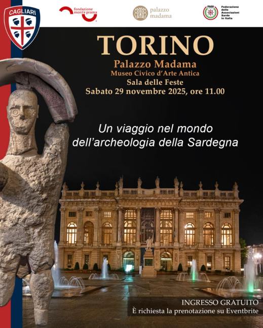 I Giganti di Mont’e Prama arrivano a Torino: cultura e sport insieme per celebrare le nostre radici. Sabato 29 novembre 2025, alle 11, la Fondazione Mont’e Prama con l’incontro con “Un viaggio nel mondo dell’archeologia della Sardegna” porta la storia archeologica del Sinis nella suggestiva Sala delle Feste di Palazzo Madama, grazie alla collaborazione con il Cagliari Calcio, che sarà a Torino per il match con la Juventus alle 18. Apriranno l’incontro i saluti istituzionali di Gregorio Thaon Di Revel Mazzonis, responsabile Ufficio Mostre della Fondazione Torino Musei; di Anthony Muroni, presidente della Fondazione Mont’e Prama; di Stefano Melis, direttore generale del Cagliari Calcio; di Bastianino Mossa, presidente FASI; e di Francesco Pongiluppi, vicepresidente della FASI. Quindi due conferenze per raccontare il passaggio dalla pietra al culto dell’acqua e il motivo per cui oggi, i Giganti, meritino di essere conosciuti e protetti: “Dalla pietra all’acqua” a cura dell’archeologo Giorgio Murru con le immagini di Nicola Castangia e “La scoperta dei Giganti e la loro valorizzazione” a cura dell’archeologa Ilaria Orri.