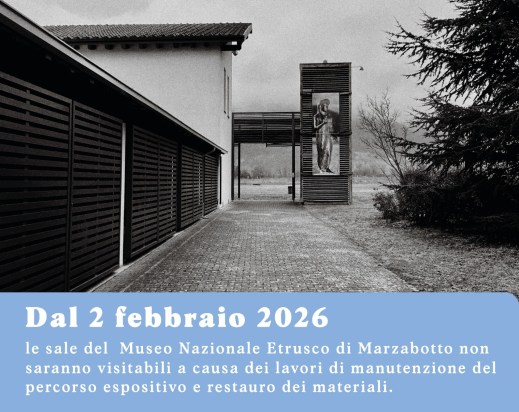 Dal 2 febbraio 2026 le sale del museo nazionale Etrusco di Marzabotto non sono visitabili a causa dei lavori di manutenzione del percorso espositivo e restauro dei materiali. Il parco archeologico della città di Kainua rimarrà invece fruibile: dal martedì al sabato accesso solo per gruppi accompagnati da guida su prenotazione dalle 9.15 alle 16.30, domenica accesso libero dalle 9.15 alle 16.30, lunedì chiuso. Potranno essere accettati solo pagamenti effettuati tramite la App Museitaliani o POS. Non sarà possibile effettuare pagamenti in contanti. Info mn-bo.museonazionaletrusco@cultura.gov.it oppure chiamando al 349.2834073.