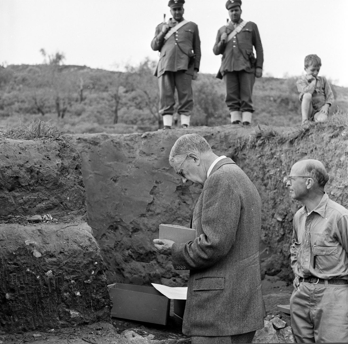 Re Gustavo VI Adolfo e il professor Erik Sjöqvist a Serra Orlando (ottobre / novembre 1955) (foto Archivio di Princeton – Morgantina Collection, Department of Art and Archaeology)