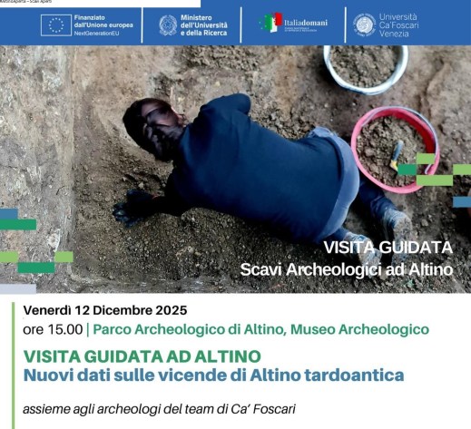 Appuntamento prenatalizio al parco archeologico di Altino (Ve) mentre continuano le ricerche dell’università Ca’ Foscari alla scoperta di Altino tardoantica. Venerdì 12 dicembre 2025, alle 15, per #AltinoAperta – Scavi Aperti, visita guidata ad Altino con i ricercatori e le ricercatrici dell’università Ca’ Foscari, diretti dal prof. Diego Calaon, durante la quale saranno forniti nuovi dati sulle vicende di Altino tardo-antica. Due nuovi saggi di scavo, nelle aree archeologiche del Parco, stanno fornendo infatti ulteriori dati sul grande edificio con fondazione in basoli indagato in estate: un tassello alla volta, comincia a delinearsi la storia della città prima del suo abbandono. La visita guidata è su prenotazione: gratuita per gli abbonati e inclusa nel biglietto d’ingresso per gli altri. Per info e prenotazioni: info.parcoaltino@cultura.gov.it; 0422789443.