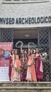 Le ragazze del Gruppo Danze Antiche di Villadose davanti al museo Archeologico nazionale di Adria (foto graziano tavan)