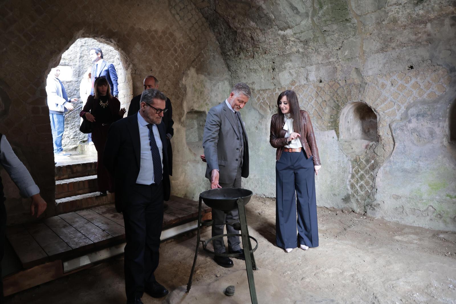 Il ministro della Cultura Alessandro Giuli con il direttore del parco archeologico di Ercolano Francesco Sirano (foto emanuele antonio minerva – agnese sbaffi / mic)
