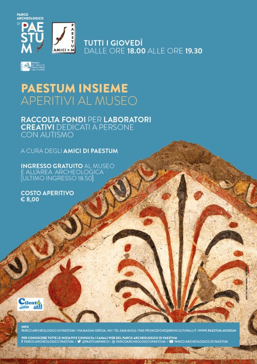 E il giovedì? Si va al parco archeologico per gli “Aperitivi di Paestum”. Con un nobile scopo: i fondi raccolti destinati a favorire le visite al museo di ragazzi autistici