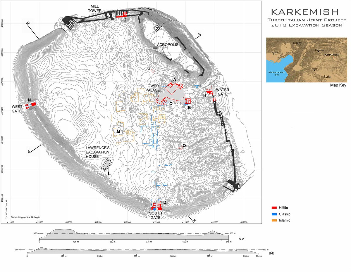 La mappa del sito archeologico di Karkemish studiato dalla missione archeologica italo-turca guidata dall’università di Bologna