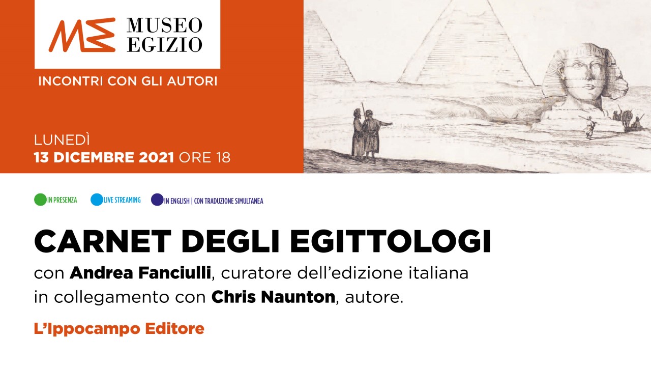 L’antico Egitto è da sempre fonte di fascinazione sin dalla più tenera età, l’idea di scoprirne i tesori, dipanarne la storia partecipando a rocambolesche spedizioni una fantasia irrinunciabile. “I carnet degli egittologi” di Chris Naunton, edito da Ippocampo Editore contribuisce proprio alla costruzione di questo immaginario: una raccolta delle storie delle donne e degli uomini che per primi hanno dissotterrato tesori e templi, portando alla luce una civiltà che pareva dimenticata per sempre. Per presentare il volume lunedì 13 dicembre 2021, alle 18, nella sala Conferenze del museo Egizio Andrea Fanciulli, il curatore dell’edizione italiana del libro, dialogherà con l’autore Chris Naunton in collegamento da remoto, per dipanare i segreti che hanno portato alla creazione di questa splendida narrativa. Ingresso libero fino a esaurimento posti. Conferenza in inglese con traduzione simultanea. Live streaming sulla pagina Facebook e sul canale YouTube del Museo.