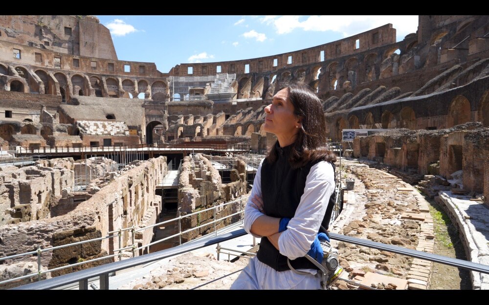 Federica Rinaldi parla dalla piattaforma aerea che la sta portando in avvicinamento alla Colonna Traiana, meraviglia dell’architettura antica, inaugurata il 12 maggio del 113 d.C. Racconta le imprese dell’imperatore Traiano contro i Daci. È una colonna centenaria, ovvero alta 100 piedi, circa 30 metri, appoggiata su un basamento e quindi alta complessivamente circa 40 metri. La cosa più straordinaria di 200 metri di fregio istoriato che raccontano appunto le campagne daciche dell’imperatore Traiano. All’interno una scala a chiocciola di 185 scalini consente di arrivare su in alto dove oggi la statua di San Pietro domina su tutta l’area archeologica centrale di Roma. “Siamo qui perché vogliamo a distanza di anni tornare a vedere da vicino il fregio, verificarne lo stato di conservazione, controllare le mappature che furono fatte negli anni ’80 ed eventualmente testare situazioni che sono evolute nel corso di questi decenni anche sicuramente a causa di un aumento dell’inquinamento ma anche di un repentino cambio climatico che potrebbe in qualche modo aver inciso anch’esso sullo stato di conservazione”. Stiamo arrivando per vivere questa esperienza unica ed emozionante.