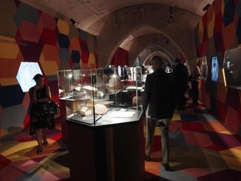 L’originale, coloratissimo allestimento della mostra “Longobardi. Un popolo che cambia la storia” al castello di Pavia (foto Graziano Tavan)