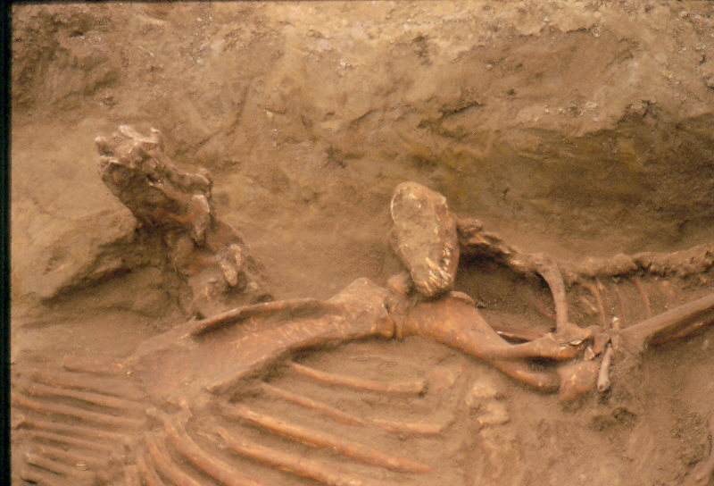 Gli scheletri dei tre animali, trovati a Povegliano – spiegano ancora Bedini e Petiti -, sono quasi completi e in discrete condizioni di conservazione. La deposizione dei tre animali è stata simultanea, ma il fatto che i due scheletri dei cani coprano quello del cavallo indica che quest’ultimo fu deposto per primo nella fossa. Lo scheletro del cavallo, un castrone di età adulta e di circa 140 cm di altezza al garrese, utilizzato in vita come cavalcatura o animale da trasporto, è privo del cranio. Ma posizione delle vertebre cervicali e dimensioni della fossa indicano che il cavallo, al momento dell’inumazione, era privo della testa. Il cane posizionato davanti agli arti anteriori del cavallo è stato deposto sul fianco destro. Quello collocato dietro gli arti posteriori del cavallo poggia sul fianco sinistro con il capo rivolto all’indietro. Entrambi i cani hanno circa un anno di età e appartengono a uno stesso tipo, affine a quello degli attuali levrieri e in misura minore a quello dei segugi. “Anche se nessuno dei tre scheletri presenta tracce di lesioni che possano aver prodotto la morte degli animali, è indubbio che essi furono uccisi intenzionalmente. È verosimile che il cavallo, come quello di villa Lancia di Testona (Moncalieri, Torino) sia stato abbattuto per mezzo di un colpo vibrato a livello del cranio – non conservato – e successivamente decapitato, e che i cani siano stati sacrificati secondo modalità che non lasciavano tracce sulle ossa, ad esempio per sgozzamento”.