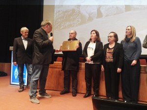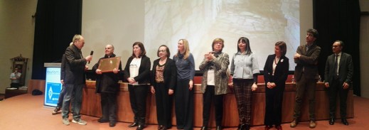 La giuria del premio Francovich con al centro Antonella Scarinci (con la targa), Andrea Staffa e Rocco Valentini per il riconoscimento al museo dell’Abruzzo bizantino e altomedievale di Crecchio (Ch) (foto Graziano Tavan)