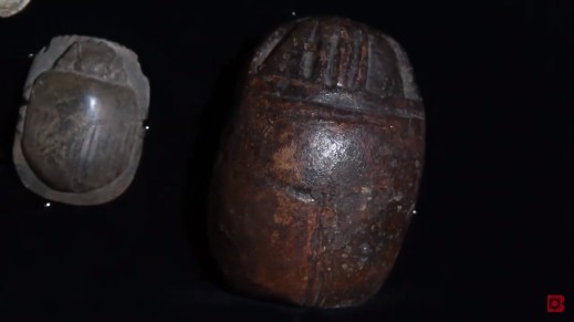 Tra gli oggetti simbolo della civiltà egizia un posto di rilievo spetta allo scarabeo. “Ritenuto sacro è chiamato keper considerato un potente amuleto con funzione apotropaica, simbolo di rinascita e cambiamento. È associato al dio dell’alba, connesso al sole che scaccia le tenebre. Era usato in diversi contesti. Poteva apparire come anello sigillare per validare i documenti, usato dalle alte gerarchie, poteva comparire sulle porte sacre di grandi dimensioni con valori di protezione e, a partire dalla XVIII dinastia, è collocato nell’ambito funerario. Veniva posto al di sopra del cuore, sul petto della mummia, proprio perché lo scarabeo diveniva una sorta di cuore divino capace con i suoi poteri di percepire anche l’invisibile, ed era determinante nel passaggio dalla vita terrena a quella eterna perché donava alla mummia il potere di scacciare il terribile serpente Apopi e i pericoli disseminati nel cammino del viaggio notturno verso il mondo dei morti”. Un esemplare delle collezioni museali è di grandi dimensioni e fu realizzato durante il Nuovo Regno tra il 1500 e il 1070 a.C. “È un esemplare molto importante. Reca inciso un capitolo tratto dal Libro dei Morti, dove si esorta il cuore a non testimoniare contro il defunto durante la cerimonia della pesatura del cuore ovvero nel momento in cui gli dei, Osiride e altre 42 divinità, valuteranno l’operato in vita del defunto”.