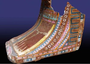 I sarcofagi. Il raggiungimento della mummificazione artificiale comporta una serie di conseguenze. Tutto l’apparato teologico, religioso, mitologico viene arricchito. “Per preservare il corpo del defunto non servono solo queste operazioni che vengono applicate sul corpo stesso, ma servono anche delle divinità che si possono fare garanti di tutto ciò”. Innanzitutto Osiride, che è il sovrano dell’Oltretomba, il primo re dell’Egitto, che una volta ucciso dal fratello Seth è risuscitato, diviene colui che si fa garante dell’ordine costituito nell’Oltretomba. Ma poi ci sarà anche Anubi “colui che apre le porte dell’Aldlà”, che è la divinità sciacallo che riesce ad accompagnare il defunto nell’Aldilà. “Teniamo presente però che il corpo deve sì essere preservato, ma si deve garantirne anche la preservazione per un lungo periodo. Ecco quindi che c’è bisogno di contenitori – i sarcofagi – che possano preservare i resti umani”. Un bellissimo esempio di sarcofago monumentale dell’Antico Regno conservato all’Egizio di Torino è il sarcofago di Duaenra, figlio del faraone Chefren (IV dinastia), in granito rosa di Assuan, massiccio. “In questo periodo si sviluppano anche molti sarcofagi in legno a parallelepipedo con un coperchio bombato e sul lato la cosiddetta rappresentazione di facciata di palazzo. Il sarcofago quindi ricorda una dimora perché è esso stesso la nuova dimora del defunto, la “casa per l’eternità”. Questa, che è la prima forma di sarcofago dell’Antico Egitto, è anche la rappresentazione del geroglifico per “sepoltura”. Questa tipologia tornerà nell’VIII sec. a.C. I sarcofagi antropomorfi vengono introdotti in Egitto molto più tardi, con la XVII dinastia”.