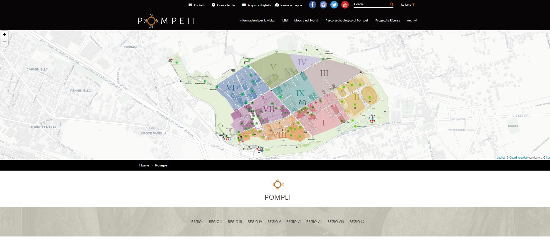Una novità è la mappa interattiva dell’area archeologica di Pompei, facilmente navigabile sia da mobile che da desktop, con aggiornamenti in tempo reale sulle aperture e gli orari delle domus, con foto e descrizione degli edifici e con la possibilità di potersene servire come guida mobile per orientarsi facilmente all’interno degli scavi. Il sito, nell’ottica dell’attenzione che il Parco archeologico sta riservando all’ accessibilità degli utenti di ogni categoria al patrimonio culturale di Pompei, è in linea da un punto di vista normativo con gli standard tecnici previsti dal Decreto Ministeriale 8 luglio 2005 e successive modifiche (Allegato A ).