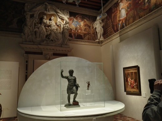 Ercole vigila dall’alto della suggestiva loggia barocca l’ingresso del palazzo e quanti fanno visita alla nobile famiglia vicentina dei Leoni Montanari di cui è nume tutelare. Ma ai più sfugge il suo sguardo. I visitatori che varcano la soglia della storica dimora di contra’ Santa Corona, a Vicenza, oggi sede delle collezioni delle Gallerie d’Italia di Banca Intesa San Paolo, attraversano distratti l’antico passo carraio e salgono al piano nobile. E qui invece non può sfuggire l’altro protagonista del palazzo e della famiglia che questo palazzo ha voluto con tutte le sue decorazioni celebrative, Apollo. Fino al 14 luglio 2019 un bellissimo Apollo del I sec. d.C. dal museo romano di Palazzo Massimo accoglie i visitatori nel “suo” palazzo. Alle sue spalle si apre il grande Salone, non a caso dedicato proprio ad Apollo, dove inizia il percorso della mostra “Mito. Dei ed eroi”, a cura di Fernando Mazzocca, Federica Giacobello, Agata Keran, allestita per celebrare il ventennale dell’apertura della sede vicentina delle Gallerie d’Italia (vedi https://archeologiavocidalpassato.wordpress.com/2019/05/05/a-vicenza-la-mostra-mito-dei-ed-eroi-per-il-ventennale-delle-gallerie-ditalia-fa-riscoprire-arte-e-architettura-di-palazzo-leoni-montanari-in-cui-preziosi-reperti-antichi-d/). Il percorso si snoda lungo il piano nobile di Palazzo Leoni Montanari che rappresenta uno straordinario palcoscenico d’arte, popolato di miti e di allegorie profondamente legati al destino umano e storico della casata Leoni Montanari. Il filo conduttore della mostra è costituito dalle raffigurazioni pittoriche che ornano il palazzo di origine seicentesca: miti e iconografie greche risemantizzati per esaltare i valori ideali della committenza alla luce dell’ideologia e del sentimento del tempo. Partendo dunque dalla rilettura moderna, il visitatore è poi condotto a riscoprire divinità e racconti mitici nella loro autenticità antica, a comprenderne il valore religioso e artistico per cui furono concepiti.