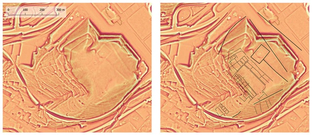 Ipotesi ricostruttiva di un tratto della fortificazione esterna di San Rocco (disegno di G. Zanettini)