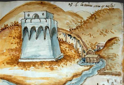 Un acquerello del Codice Romano-Carratelli con illustrato un dettaglio del sistema difensivo della Calabria Ultra