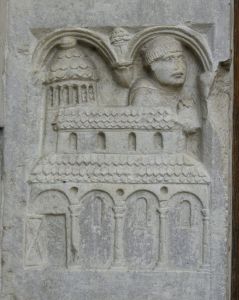 Sant’Anselmo, fondatore dell’abbazia di Nonantola, scolpito sul portale, opera dei seguaci di Wiligelmo