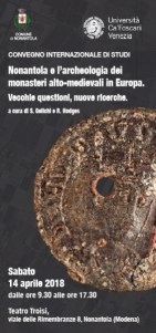 Sabato 14 aprile 2018, dalle 9.30, Nonantola ospita un importante convegno internazionale, “Nonantola e l’archeologia dei monasteri alto-medievali in Europa. Vecchie questioni, nuove ricerche”, a cura di Sauro Gelichi e Richard Hodges, che concentrerà l’attenzione sui più recenti e innovativi studi relativi all’archeologia monastica altomedievale. Il convegno internazionale di studi è promosso da Comune di Nonantola, università Ca’ Foscari e museo di Nonantola, in collaborazione con soprintendenza Archeologia, belle arti e paesaggio per la città metropolitana di Bologna e le province di Modena, Reggio Emilia e Ferrara, ArcheoNonantola e Abbazia di Nonantola, e con il sostegno di IBC Regione Emilia-Romagna (L. R. 18/2000) legato al progetto “Longobardi al confine”. Il convegno, importante momento di confronto e di approfondimento con i maggiori specialisti dell’archeologia medievale europea, sarà l’occasione per presentare il volume “Nonantola 6. Monaci e contadini. Abati e re. Il monastero di Nonantola attraverso l’archeologia (2002-2009)”, a cura di Sauro Gelichi, Mauro Librenti e Alessandra Cianciosi. La sesta pubblicazione della collana archeologica su Nonantola illustrerà i risultati delle campagne estive di scavi svolti dell’università dal 2002 al 2009 nel giardino dell’abbazia di San Silvestro in regime di concessione ministeriale, con la collaborazione e il sostegno della Soprintendenza prima Archeologica, poi Archeologia, belle arti, paesaggio per la città metropolitana di Bologna e le province di Modena, Reggio Emilia e Ferrara (SABAP-BO). Il convegno e la presentazione del volume rappresentano la fase conclusiva di un progetto di ricerca esemplare che ha prodotto sei pubblicazioni scientifiche, mostre, visite guidate e nuovi percorsi archeologici all’interno del Museo di Nonantola e del borgo.
