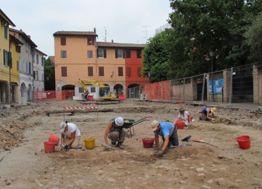 Recentemente a Nonantola è stato presentato un altro libro, “Nonantola 5. Una comunità all’ombra dell’abate. I risultati degli scavi archeologici di piazza Liberazione”, a cura di Mauro Librenti e Alessandra Cianciosi. Nel giugno 2015 l’amministrazione comunale, all’interno di un progetto di riqualificazione urbana cofinanziato dalla Regione Emilia-Romagna che ha interessato il centro storico di Nonantola, aveva avviato i lavori di rifacimento di piazza Liberazione, già oggetto nel 2004 di sondaggi archeologici da parte dell’università da cui erano emersi la chiesa di San Lorenzo e un cimitero. Per questa ragione è stato realizzato un nuovo progetto di ricerca grazie al quale, nei mesi di luglio e agosto 2015, gli studenti di archeologia medievale dell’ateneo veneziano si sono potuti cimentare nello scavo stratigrafico della piazza, sotto la direzione scientifica della soprintendenza Archeologia, belle arti e paesaggio per la città metropolitana di Bologna e le province di Modena, Reggio Emilia e Ferrara e dell’Università Ca’ Foscari di Venezia. Questi scavi hanno portato in luce per intero l’area pertinente la chiesa di San Lorenzo (XI-XIV secolo), alcune sepolture collocate dietro le absidi e ampie porzioni di pavimentazione della piazza trecentesca in mattoni e ciottoli. Proprio lo scavo di Piazza Liberazione è il protagonista del volume curato da Mauro Librenti e Alessandra Cianciosi. Lo scavo di piazza Liberazione ha reso possibile un progetto di riallestimento della sezione medievale del museo di Nonantola, in collaborazione con l’università Ca’ Foscari e la soprintendenza Archeologia, che prevede l’esposizione dei reperti rinvenuti in piazza, i plastici delle tre fasi principali dello scavo, un touch-screen che presenta tutti gli scavi eseguiti negli anni nel centro storico di Nonantola e, nell’ottica di museo diffuso, una cartellonistica archeologica collocata nei luoghi in cui sono stati effettuati sondaggi di scavo nel borgo (Nonantola Sotto-Sopra).