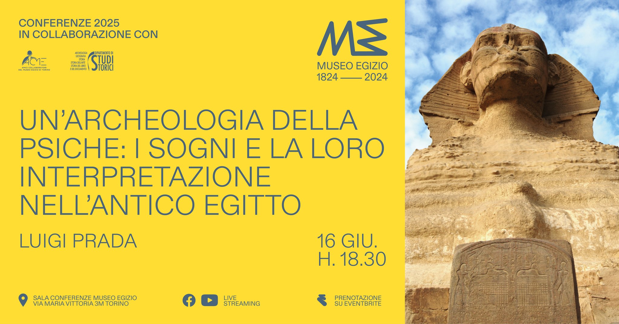 I sogni sono un fenomeno universale che permea la vita umana, e quella degli Egiziani antichi non faceva eccezione. Dall’Antico Regno sino al Periodo Copto, testimonianze relative alla dimensione onirica e alla vita del subconscio sono registrate in testi di ogni natura, da steli monumentali contenenti decreti regi, a umili documenti di vita quotidiana malamente tracciati su frammenti di ceramica. Se ne parla al museo Egizio di Torino lunedì 16 giugno 2025, alle 18.30, in sala conferenze nell’incontro “Un’archeologia della psiche: i sogni e la loro interpretazione nell’Antico Egitto” con Luigi Prada dell’università di Uppsala. L’evento è a ingresso libero con prenotazione obbligatoria al link https://www.eventbrite.it/…/unarcheologia-della-psiche…. Live streaming sulla pagina Facebook e sul canale YouTube del museo Egizio. La conferenza è organizzata in collaborazione con l’associazione ACME e il dipartimento di Studi storici dell’università di Torino. A partire dal Nuovo Regno, gli Egizi iniziarono persino a comporre libri di oniromanzia (ovvero, di interpretazione di sogni), intesi a decifrare messaggi enigmatici e premonizioni che si riteneva fossero contenuti nei sogni stessi. Questa conferenza presenterà i risultati di una vasta ricerca sul mondo dei sogni nell’Antico Egitto, e in particolare introdurrà il pubblico a un gruppo di papiri contenenti libri di oniromanzia tuttora inediti, rivelando aspetti sconosciuti della psiche antico-egiziana.