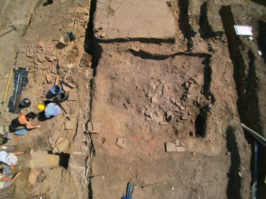 “Abbiamo proseguito le ricerche anche nel settore del Teatro, aprendo un’area molto vasta di fianco a quella dell’anno scorso. Le indagini sono ancora in corso ma va segnalato il ritrovamento di strutture di fondazione della cavea, in grandi blocchi di arenaria, che si stanno rivelando molto più profonde e ben conservate di quanto non fosse emerso l’anno scorso. L’esplorazione della parte bassa della cavea ha restituito anche materiali lapidei lavorati, come un grosso frammento di cornice, mentre sono iniziate quest’anno le indagini nella zona dell’orchestra e degli ingressi laterali che si trovano a profondità elevate in quanto parte della struttura è stata parzialmente costruita sotto il livello di calpestio antico. Queste scoperte stanno definendo la forma architettonica di un grande teatro, consentendoci in futuro di proporne una ricostruzione sempre più dettagliata”.