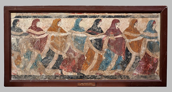 Le lastre della straordinaria Tomba del Tuffatore (480-470 a.C.) esposte nelle sale del museo Archeologico nazionale di Paestum
