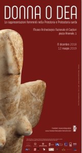 Locandina della mostra “Donna o dea. Le figure femminili nella preistoria e protostoria sarda” al museo Archeologico nazionale di Cagliari