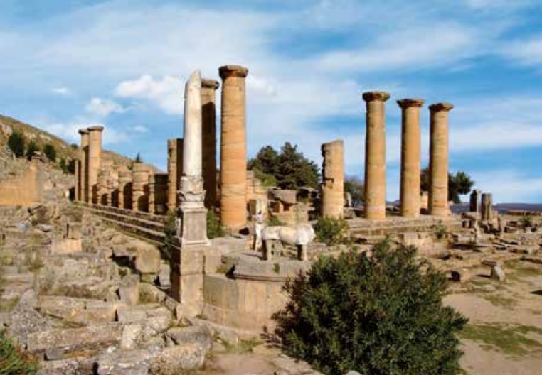 CIRENE Tempio di Zeus Nel quartiere dell’Agorà, il tempio di Zeus, uno dei primi monumenti a essere eretto dai coloni greci, è il più grande dei templi che i Greci costruirono nel Nord Africa. Eretto nel V secolo a.C., come il Partenone di Atene, è più grande del tempio dell’Acropoli. Il Tempio di Zeus è stato oggetto di numerosi restauri nel corso della sua storia. Il materiale utilizzato è il calcare giallo, marnoso, che è tipico della regione. Nessuna malta legava i blocchi di pietra. I più grandi erano tenuti insieme da barre di ferro saldate con piombo fuso. Questo tempio dorico si sviluppava con 8 colonne sul fronte e 17 sui lati lunghi, che sono state tutte abbattute durante la rivolta giudaica dell’anno 117. L’opera di restauro degli archeologi italiani ha restituito l’originaria solennità al tempio di Giove.