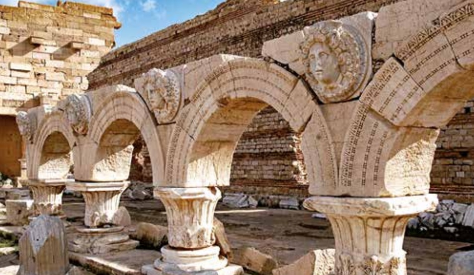 LEPTIS MAGNA Un vero trionfo, questa città adagiata sulle sponde del Mediterraneo. Fu prima punica e poi, conquistata dai Romani, fu un’orgogliosa e una splendida città, una nuova Roma, sontuosa e ricca, opulenta, città di mercanti, che visse una epopea grandiosa, “un trionfo”. Leptis fu davvero “Magna”. Siamo dinnanzi al prezioso teatro. Ascoltiamo in silenzio, parole solo velate dal respiro del mare, pare ancora oggi udire declamare testi antichi ed essere coinvolti nelle recite che qui si svolgevano, per Leptis, la città Regina. Sono “riflessi” di canti di tragedie greche, le storie narrate sulla scena. Alla fine del II secolo un uomo che veniva dall’Africa e che parlava male il latino, esprimendosi preferibilmente in neo-punico, arrivò a Roma per salire sul trono. Era Settimio Severo che aveva sconfitto i Persiani e fu Imperatore. L’11 settembre dell’anno 203, Settimio, ritornato nella sua città natale, avrebbe attraversato l’arco trionfale eretto per rendere omaggio alla sua gloria eterna e alla sua famiglia. Ma, che questo sia realmente avvenuto, molti archeologi e storici hanno seri dubbi. Comunque l’arco è lì, in tutta la sua maestosità e bellezza.
