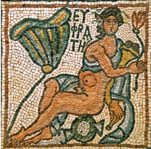 QASR LIBIA I mosaici Straordinaria la decorazione musiva che in origine era posta sul pavimento della navata centrale della basilica orientale. Un magistrale esempio di iconografia simbolica cristiana del VI secolo. I mosaici sono stati realizzati fra il 539 ed il 540 per volere dei vescovi Macario e Teodoro, come indica un’epigrafe. Ora sono esposti nel vicino museo. Raffigurano il mondo intero con i quattro fiumi che, come è citato nella Genesi, nascono nel Paradiso terrestre: Fison, Gheon, Eufrates e Tigris.