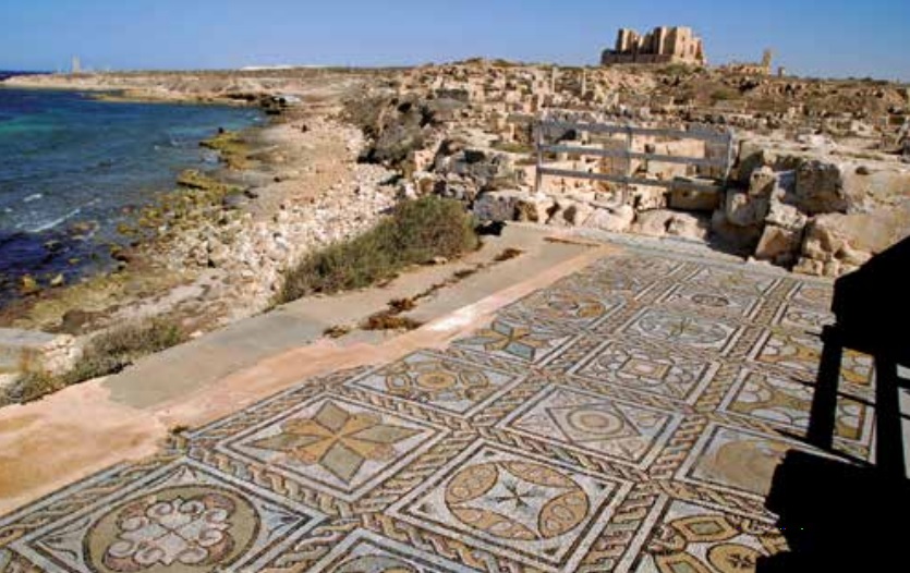 AL-ATHRUN Erano sicuramente dotati di buon gusto i sacerdoti bizantini che seppero scegliere, per le loro chiese solitarie, luoghi incantati. Tra l’intenso blu del Mediterraneo e la brulla costa della Cirenaica, nella località di Latrun, l’antica Erythron che fu un’importante sede vescovile, su una terrazza naturale spuntano le tracce di quelle che furono due basiliche bizantine datate V sec. d.C. Le due chiese furono costruite durante il regno dell’imperatore Giustiniano I (527-565). La basilica occidentale è la meglio conservata. Colpisce il susseguirsi di candidi marmi, come i plutei, su cui sono scolpiti a rilievo i simboli della cristianità. Una sinfonia di colonne, con ricchi capitelli, sorreggeva la volta delle tre navate oggi non più riconoscibili. L’ingiuria del tempo ha lasciato solo rovine del piano originale di quella che era stata la basilica orientale. L’imperatore Giustiniano negli anni 538-539, a protezione del confine meridionale, fortificò diversi porti anche in Cirenaica. Le basiliche, qui costruite, assicuravano che a marinai e soldati non sarebbe mai mancato l’aiuto divino.