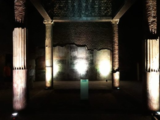 Le suggestive atmosfere degli ambienti di villa San Marco a Stabia illuminati la notte (foto parco archeologico Pompei)