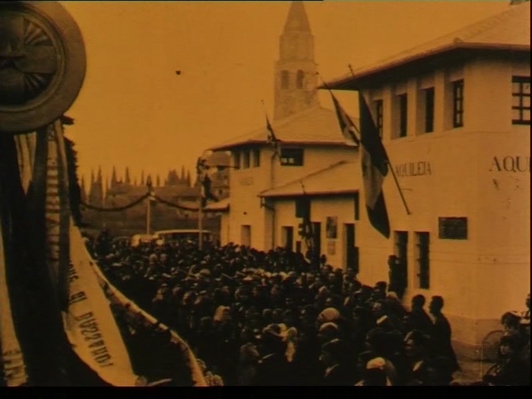 Sarà una prima assoluta la proiezione del film “Gloria. Apoteosi del soldato ignoto” ( Italia 1921, durata 77’. Federazione Cinematografica Italiana e Unione Fototecnici: formato originale 35mm (4/3), lunghezza 1680 m.; lingua: muto) in una versione restaurata digitalmente dalla Cineteca del Friuli nel 2006-2007 a partire dai materiali in 35mm conservati nella Cineteca Nazionale del Centro Sperimentale di Cinematografia di Roma. Il film sarà accompagnato dal vivo dalle note di Valter Poles (compositore e live electronics), Martina Pietrafesa al corno e pianoforte e Diego Cal alla tromba e strumenti virtuali che eseguiranno la nuova colonna sonora del film sostenuta dalla Fondazione Aquileia, ed effettuata nel 2021 da Aquileia Digital Arts (progetto a cura di Pasqualino Suppa) a partire dai file conservati presso l’Archivio Cinema della Cineteca del Friuli. Il 28 ottobre 1921 Maria Bergamas, madre di un fante italiano disperso sul fronte della prima guerra mondiale, sceglie tra undici bare con le salme di soldati non identificati quella del Milite Ignoto, in una cerimonia che si tiene all’interno della Basilica di Aquileia. Il feretro, caricato su un convoglio speciale, parte alla volta di Roma, dove viene tumulato il 4 novembre al Vittoriano. Riprese effettuate dal 28 ottobre al 4 novembre 1921 a Trieste, Aquileia, Grado, Udine, Codroipo, Pordenone, Sacile, Conegliano, Venezia, Mestre, Montegrotto, Pontelagoscuro, Ferrara, Firenze, Arezzo, Orvieto, Roma, Napoli, Milano, Genova, Bergamo, Catania, Messina, Torino.