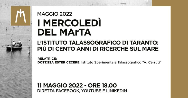 Taranto. Al via il nuovo ciclo di conferenze dei “Mercoledì del MArtA” che da maggio a luglio saranno dedicati al mare e alle sue risorse a corollario della mostra “Taras e i doni del mare”. Si inizia con Ester Cecere su “L’Istituto Talassografico di Taranto: più di cento anni di ricerche sul mare”