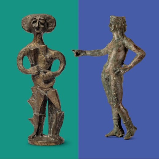 Bronzetti a confronto: Culsans etrusco (a destra) con opera di Gino Severini (a sinistra) (foto fondazione rovati)