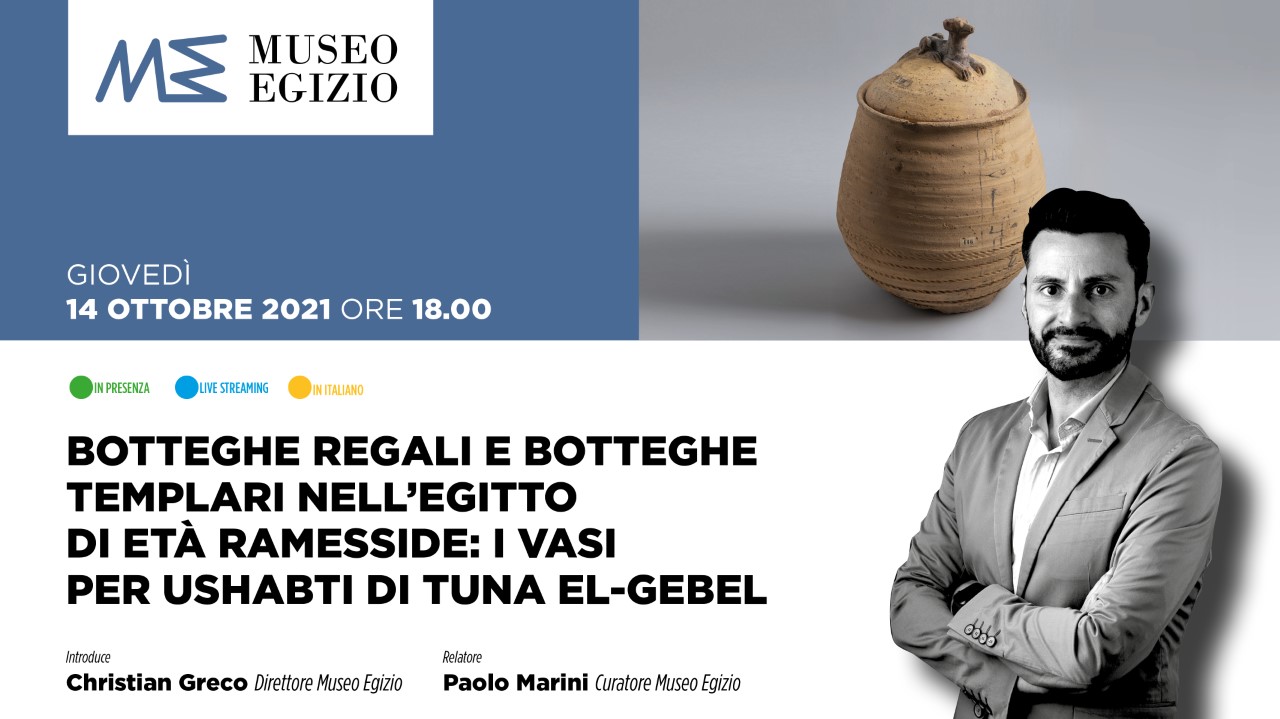 Torino. Al via il ciclo “Musei e Ricerca. Scavi, Archivi, Reperti” con la conferenza egittologica di Paolo Marini su “Botteghe regali e botteghe templari nell’Egitto di età ramesside: i vasi per ushabti di Tuna El-Gebel”