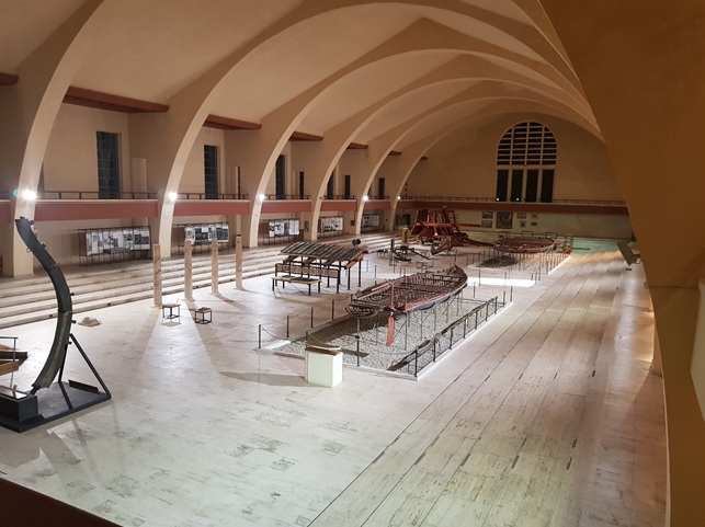 Il mosaico torna in esposizione permanente al museo delle Navi Romane, costruito tra il 1933 e il 1939 proprio per ospitare le gigantesche navi appartenute a Caligola, recuperate nel lago tra il 1929 e il 1931 e purtroppo andate distrutte in un incendio nel 1944. Posto sulla riva del lago, costruito negli anni ‘30 per proteggere i preziosi scafi appena estratti dalle acque, è una costruzione interessante già di suo, perché offre un rarissimo esempio – il primo al mondo – di struttura concepita appositamente in funzione del contenuto e condizionata da quest’ultimo nelle soluzioni architettoniche: in effetti il museo delle Navi di Nemi è un doppio hangar di calcestruzzo delle dimensioni esatte per le due navi, che erano lunghe circa 70 metri. Il progetto fu realizzato gratuitamente dall’architetto Vittorio Ballio Morpurgo, che lo volle con grandi superfici vetrate e realizzò al di sopra del tetto una terrazza praticabile da cui si gode un panorama inedito del lago, proprio sulla sponda ma in posizione elevata. Dopo il malaugurato incendio del ’44 rimase chiuso a lungo. Recentemente è stato ristrutturato in tutta la sua bellezza dalla soprintendenza Archeologica del Lazio. Ospita un tratto dell’antica Via Sacra, i modelli in scala 1:5 delle navi (fatti sulla base dei molti disegni tecnici eseguiti dagli ingegneri della Marina all’epoca del recupero), una grande statua di Caligola, pannelli illustrativi, il vario materiale archeologico di notevole interesse, reperti del Tempio di Diana.