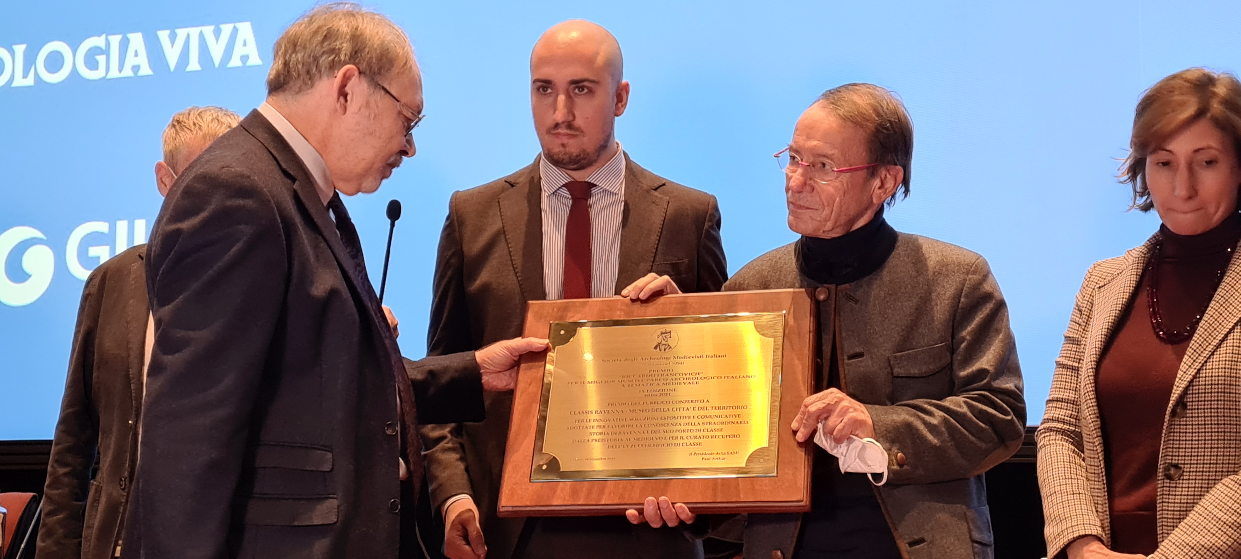 18 dicembre 2021, alle 12.00, Auditorium: RAVENNA E GORNO PREMIATI A TOURISMA. Il Premio “R. Francovich” 2021, per la comunicazione museale e la divulgazione del Medioevo, attribuito dalla SAMI – Società Archeologi Medievisti Italiani, è andato al Museo Classis Ravenna, realizzato dalla Fondazione RavennaAntica, e all’autore e conduttore televisivo Cristoforo Gorno. Il prestigioso riconoscimento verrà consegnato dal presidente SAMI prof. Paul Arthur nell’ambito del prossimo “tourismA”.