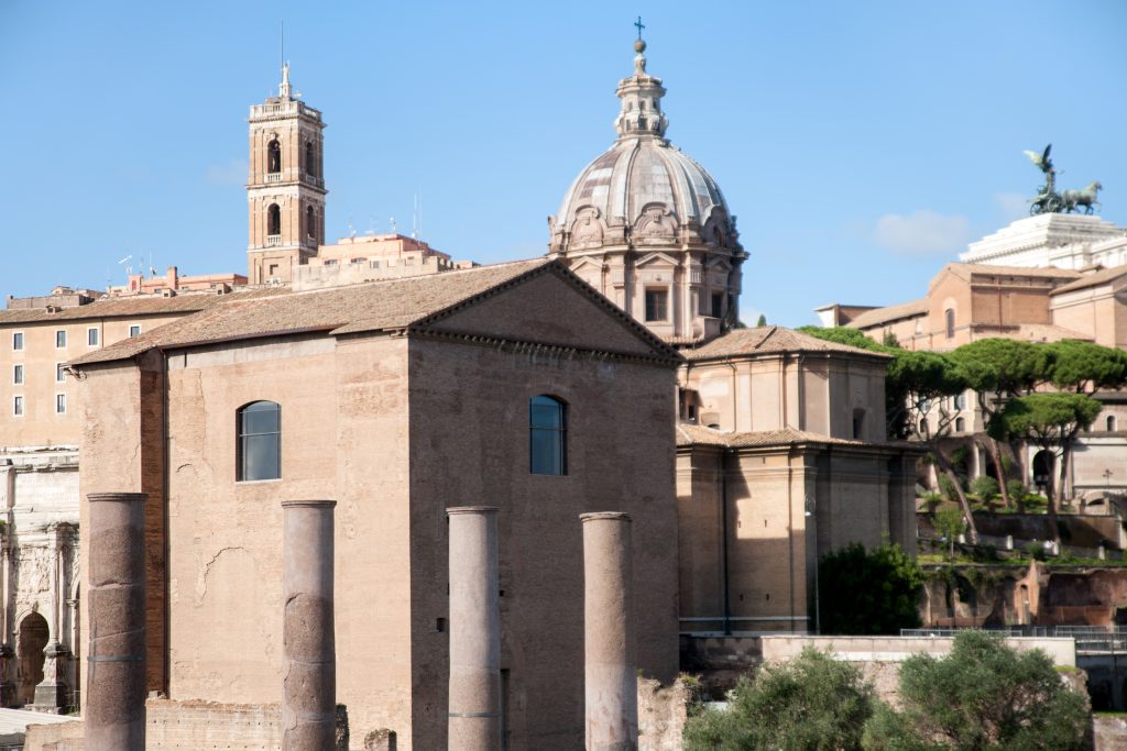 “Dopo essere stata danneggiata da un incendio nel 52 a.C.”, continuano, “venne restaurata, ma poco dopo Giulio Cesare iniziò i lavori di realizzazione del suo Foro che interessarono tutta l’area ad essa limitrofa. L’edificio che prese infine il nome di Curia Iulia fu quindi terminato e inaugurato da Augusto il 28 agosto del 29 a.C.; restaurato sotto Domiziano nel 94, subì ulteriori interventi sotto Diocleziano e nel 630, durante il pontificato di papa Onorio I, fu trasformato in chiesa, assumendo il nome di Sant’Adriano al Foro. La chiesa venne decorata con affreschi bizantini, ancora in parte visibili, e dotata di campanile, per essere successivamente restaurata in stile barocco. Tra il 1930 e il 1936 si decise di riportare l’importante edificio al suo aspetto originario: la chiesa venne sconsacrata e l’edificio spogliato di tutte le aggiunte successive all’epoca dioclezianea”.