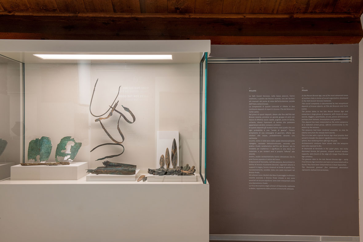 “Con l’allestimento delle sale dell’Età del Ferro abbiamo voluto anche inserire due esperienze immersive e alcune postazioni multimediali, destinate ad arricchire la narrazione dei reperti presentati nel percorso museale”, aggiunge Chiara Matteazzi. “L’uso delle tecnologie in campo museale consente infatti di migliorare con nuovi linguaggi la comprensione di tematiche complesse legate ai reperti esposti, utilizzando tecniche di storytelling per stimolare la curiosità del visitatore e amplificare il coinvolgimento cognitivo ed emozionale. L’obiettivo è quello di trasferire al visitatore, in maniera adeguata, non solo informazioni ma anche emozioni, rendendolo partecipe e coinvolgendolo nella narrazione”. “I lavori sono proseguiti senza soluzione di continuità da febbraio e con ottimi risultati”, conclude il dirigente della Direzione regionale Musei Veneto, Daniele Ferrara. “Terminato l’intero terzo piano del museo, contiamo ora di avviare molto presto il cantiere per la sezione romana, che i veronesi (e non solo) attendono da molti anni”.