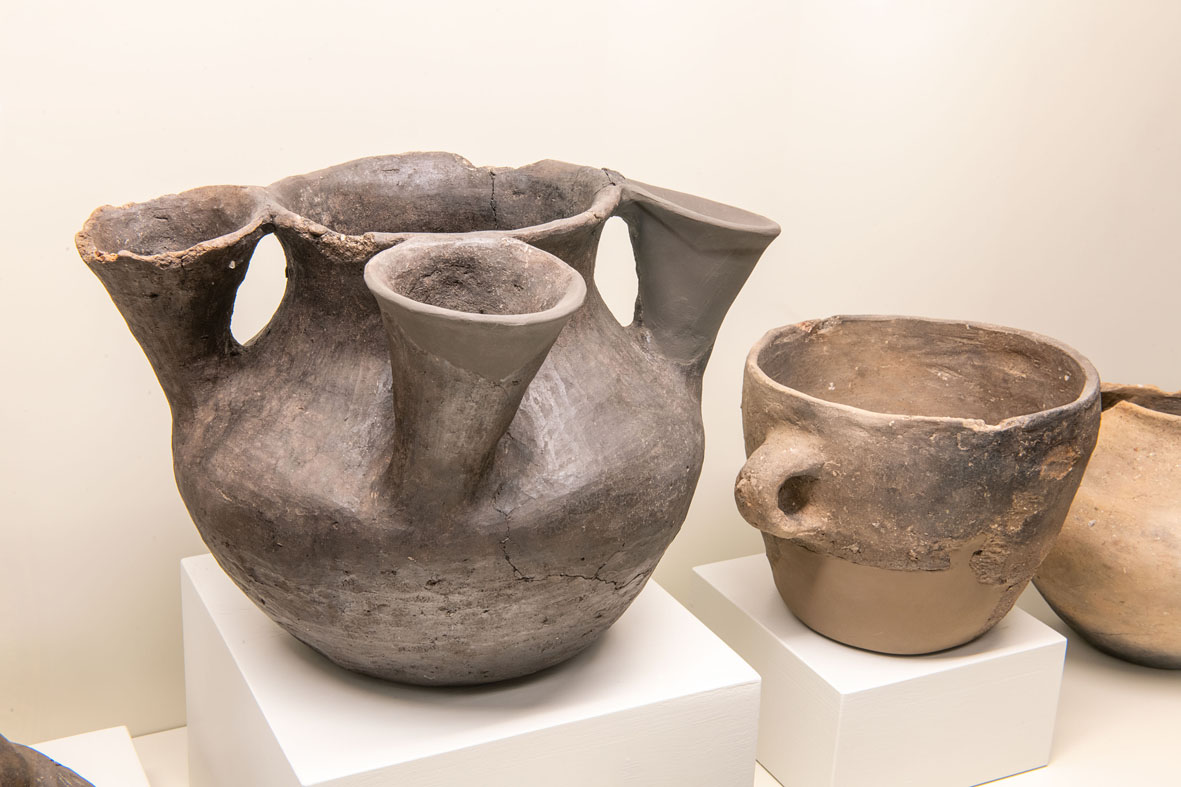 Risale invece all’Età del Bronzo antico, lo straordinario esemplare di vaso a bocche multiple recuperato durante lo scavo archeologico della Palafitta del Laghetto del Frassino presso Peschiera del Garda. Dal medesimo sito provengono anche ceramiche con decorazioni incise, conchiglie, metalli e utensili in osso, pietra e legno. Sempre dal Garda, rinvenuti ad una profondità di circa tre metri, provengono una tazza dell’Età del Bronzo antico e alcuni resti paleobotanici, tra i quali una spiga carbonizzata di farro.