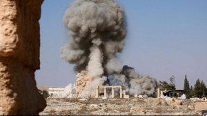 La distruzione del tempio di Baal Shimin a Palmira, patrimonio dell’Unesco, da parte dei miliziani dell’Isis