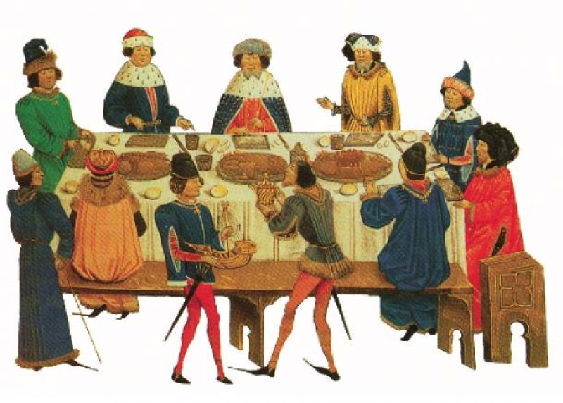 Scopriamo sapori e saperi della colazione medievale con le protagoniste, Francesca Lamon e Marta Sperandio, responsabili di Companatiche. “Il Medioevo non concepisce il fatto che si possano portare le vivande in successione una dopo l’altra come oggi avviene”, spiegano. “Così sulla tavola troviamo i vassoi dai quali ogni convitato prenderà la propria porzione e affida al galateo di ognuno la capacità di comportarsi con… giusta equità. Dietro questo tipo di servizio c’è una idea forte: ognuno deve decidere che cosa vuole mangiare, ognuno deve seguire il proprio desiderio. È un po’ il sistema moderno del buffet perché ognuno ha una propria “complessione”, come dicevano i medici medievali, e così il piatto viene composto autonomamente e ciascuno sceglie il vino a seconda dell’estro momentaneo, magari allungandolo con acqua o scaldandolo o raffreddandolo”. Ma tutti devono stare al proprio posto e non tutti ricevono le stesse pietanze. “C’è una gerarchia anche a tavola”, continuano: “chi sta nei posti con poca visibilità e di scarso prestigio riceve un cibo più modesto rispetto a chi siede alla prima mensa, vicino al padrone di casa”. In coda di taula arrivano “piccoli pesci e altre quisquilie, mentre alla prima mensa se ne servivano di magnifici”.