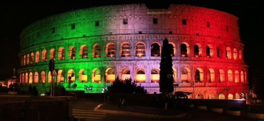 Il Colosseo illuminato col Tricolore: segno di vicinanza a quanti hanno perso congiunti e amici per il Covid-19 (foto PArCo)