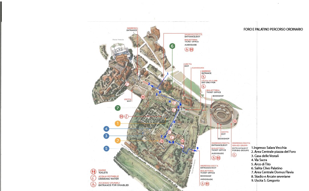 Al Foro Romano e Palatino sarà ugualmente previsto un unico ingresso, lungo via dei Fori Imperiali, in largo della Salara/Largo Corrado Ricci. Da qui il pubblico, senza necessità di prenotare per un orario preciso, potrà seguire 4 percorsi differenziati: