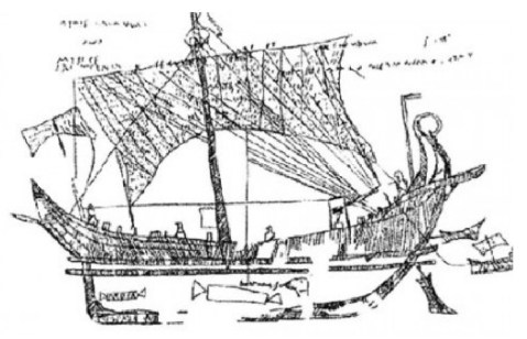 Il grande graffito inciso sulla parete Nord del peristilio, dove è raffigurata una grande nave da carico, chiamata “Europa” (foto parco archeologico di Pompei)