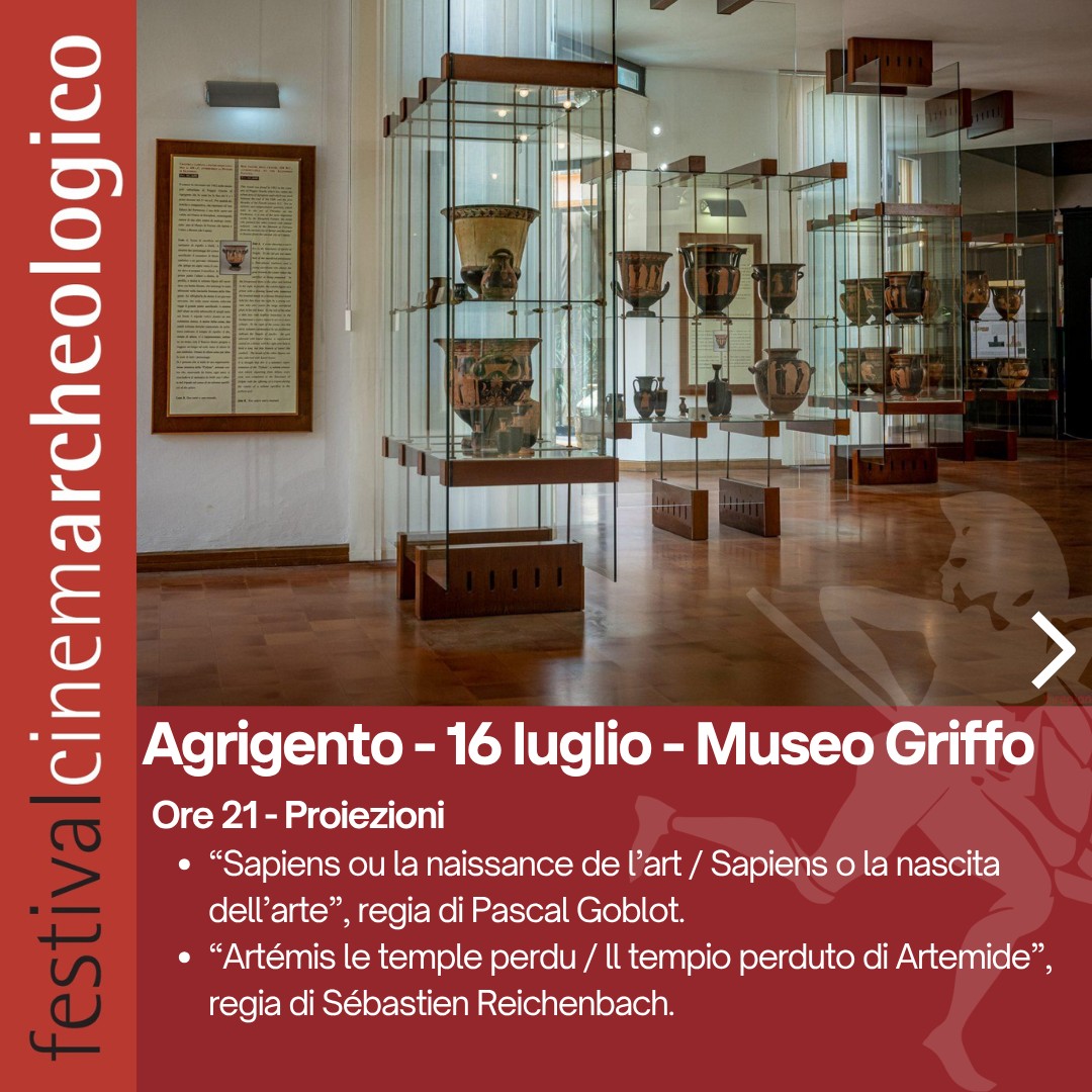 16 luglio – Museo Archeologico Regionale “Pietro Griffo”: alle 21, apre il film “Sapiens ou la naissance de l’art / Sapiens o la nascita dell’arte” di Pascal Goblot; segue il film “Artémis le temple perdu / ll tempio perduto di Artemide” di Sébastien Reichenbach.